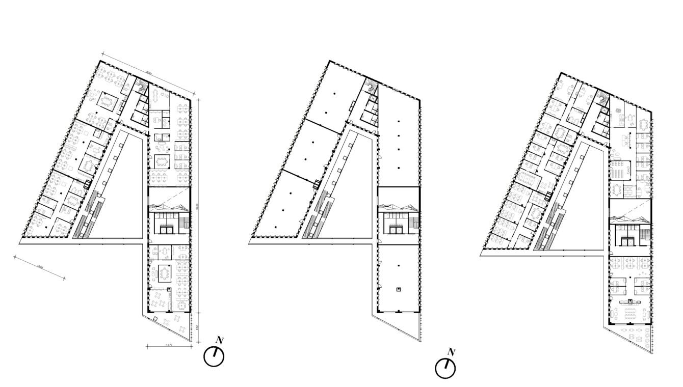So können sich Geschäftsräume auf Zwischengeschossen ausbreiten, Büroetagen können völlig frei gestaltet werden und selbst der Parkplatz kann ohne Auswirkungen auf die oberen Etagen in ein Labor, ein Geschäft oder sogar in Wohnungen umgewandelt werden.