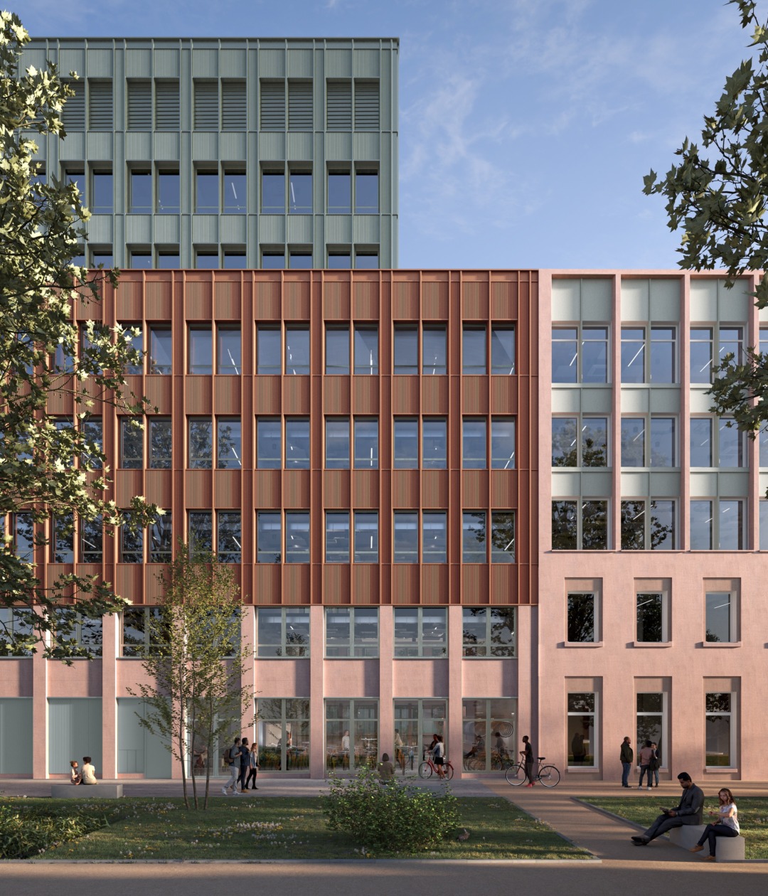 The northern frontage structures access to the campus with an active and transparent ground floor, fostering interactions between the city and the site through a dynamic showcase effect.