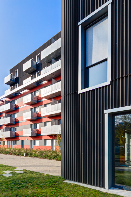 C’est le cas du CROUS de Strasbourg, qui est le premier immeuble de six niveaux en France construit intégralement en ossature bois, le bâtiment repose sur la juxtaposition de modules préfabriqués. Pensée pour soutenir le développement de l’offre en alternance, la résidence accueille 200 studios de 18 m² destinés aux étudiants, stagiaires, alternants, intervenants de formation et professeurs invités.