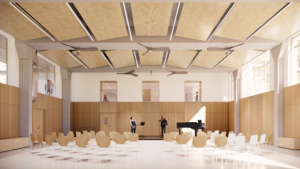 Grâce à ses qualités de matériau biosourcé et à des procédés de préfabrication, le bois permet donc de réduire les émissions associées aux travaux tout en garantissant une exécution précise. Il contribue ainsi à une architecture bas carbone, en cohérence avec l’ambition paysagère, la création des cours oasis et l’objectif de performance environnementale du projet.