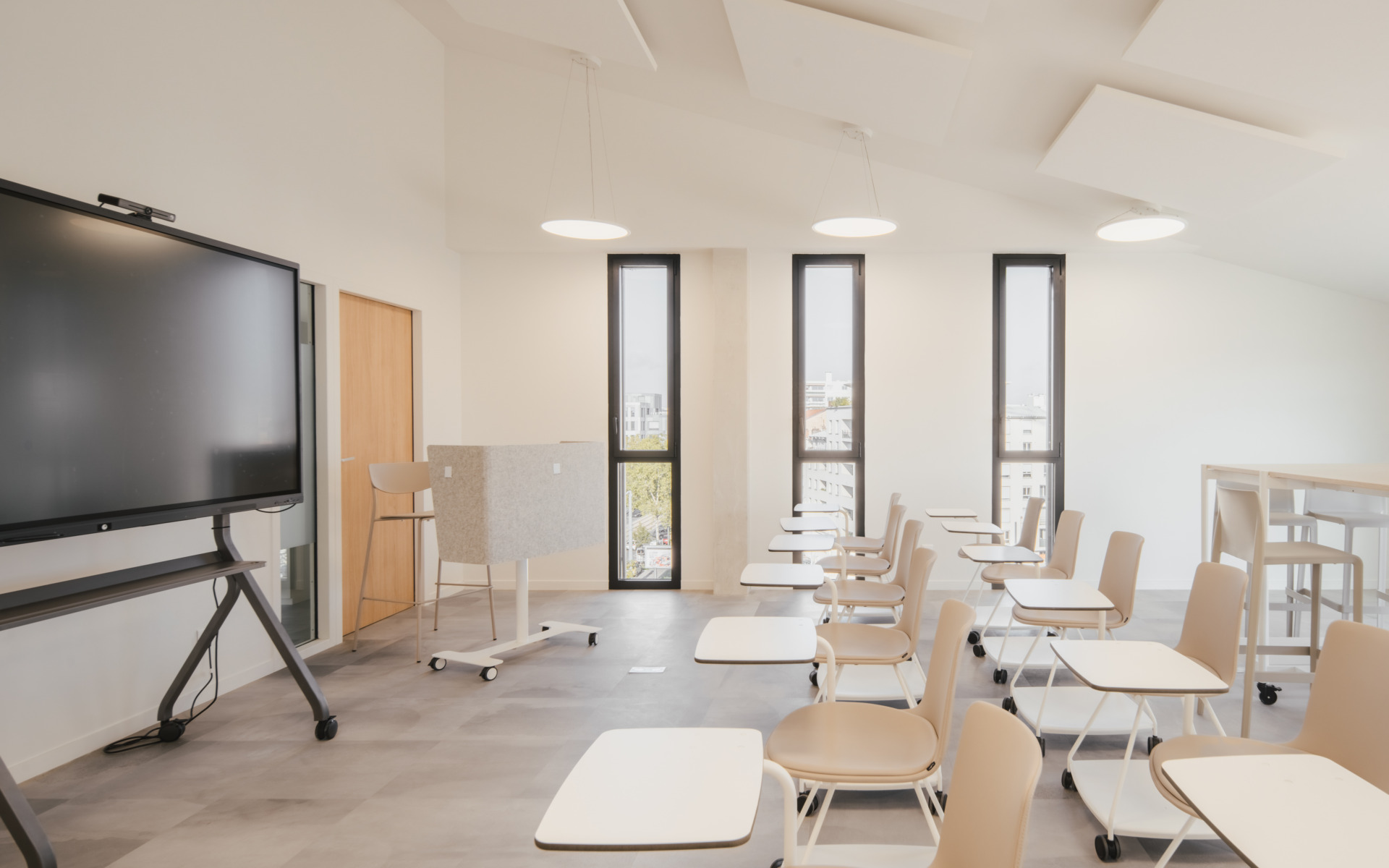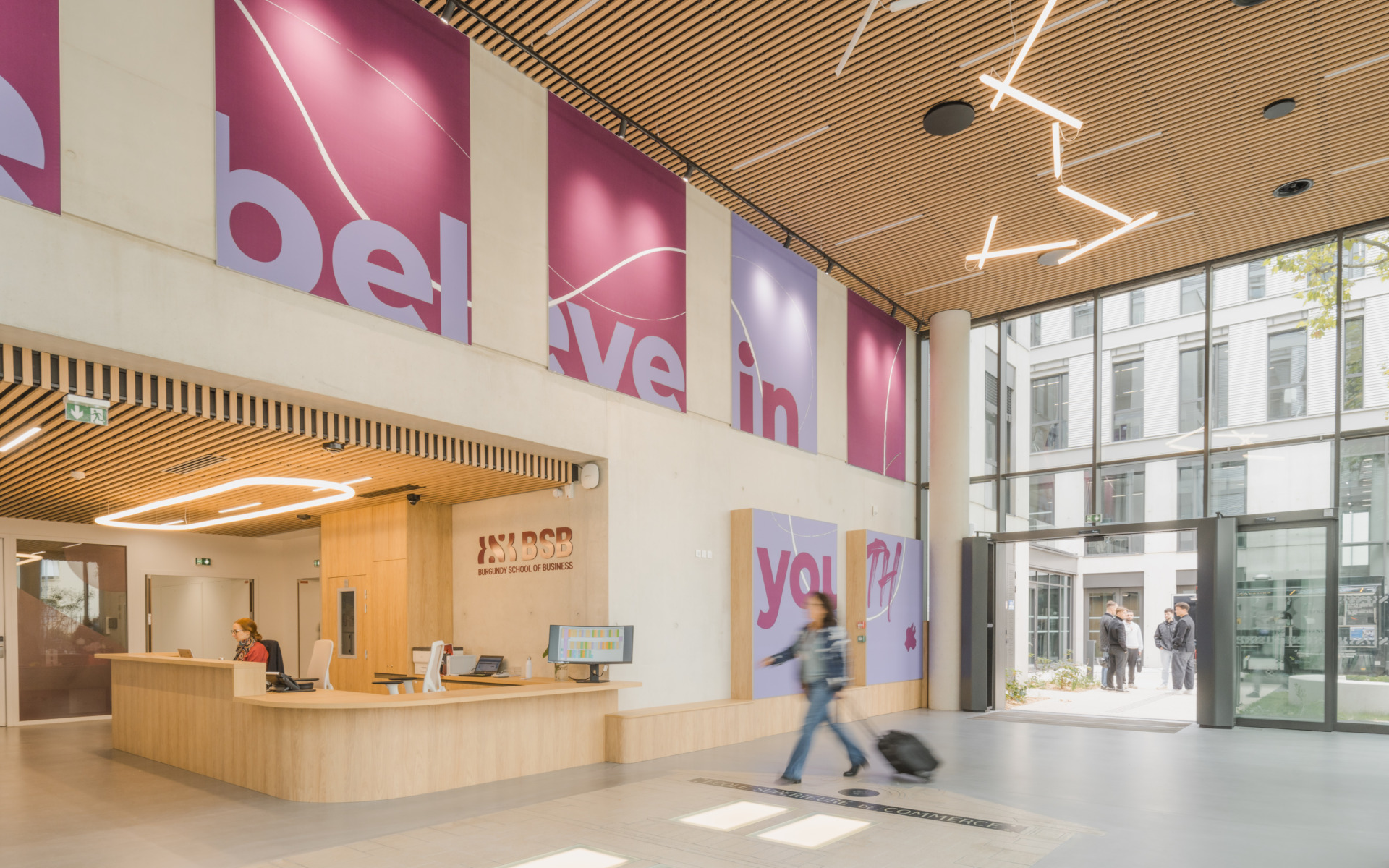 Aménagement intérieur du nouveau campus de la Burgundy School of Business de Lyon.
