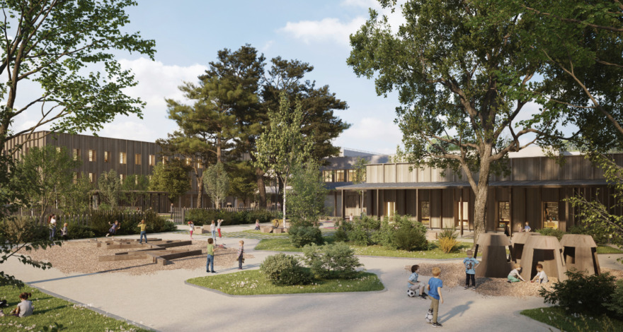 Les façades sont réalisées en ossature bois et isolées avec des bottes de paille biosourcées, illustrant une volonté affirmée d’utiliser des matériaux durables et locaux.