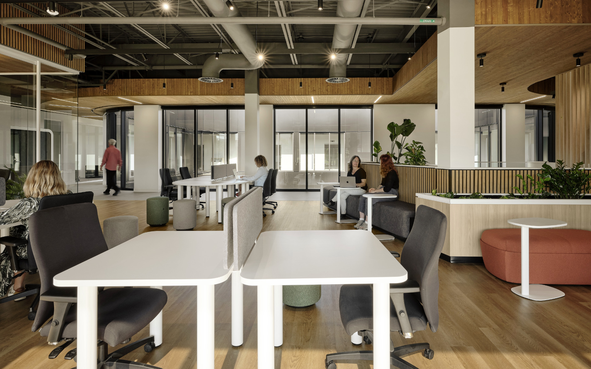 Dès l’origine, le projet établit un dialogue étroit entre technologie et nature, pensées comme des forces complémentaires. Dans un univers de précision et de maîtrise, le vivant est intégré comme composante structurante de l’expérience, au service du bien‑être, de la créativité et des dynamiques collaboratives. Cette approche biophilique crée un environnement de travail équilibré, où la performance technologique s’inscrit dans un cadre naturel apaisant et en lien avec le paysage.