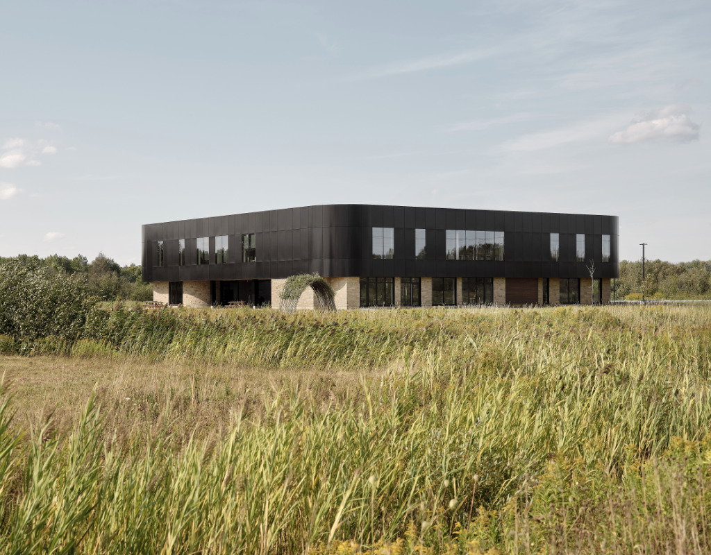 Premier bâtiment à émerger sur un site encore vierge, espace konect assume un rôle fondateur. À la fois point d’accueil et repère identitaire, il pose les bases d’un écosystème lisible, évolutif et ancré dans son environnement naturel. Plus qu’un objet isolé, le bâtiment agit comme un geste inaugural, annonçant la vision d’ensemble de la zone d’innovation en évolution.